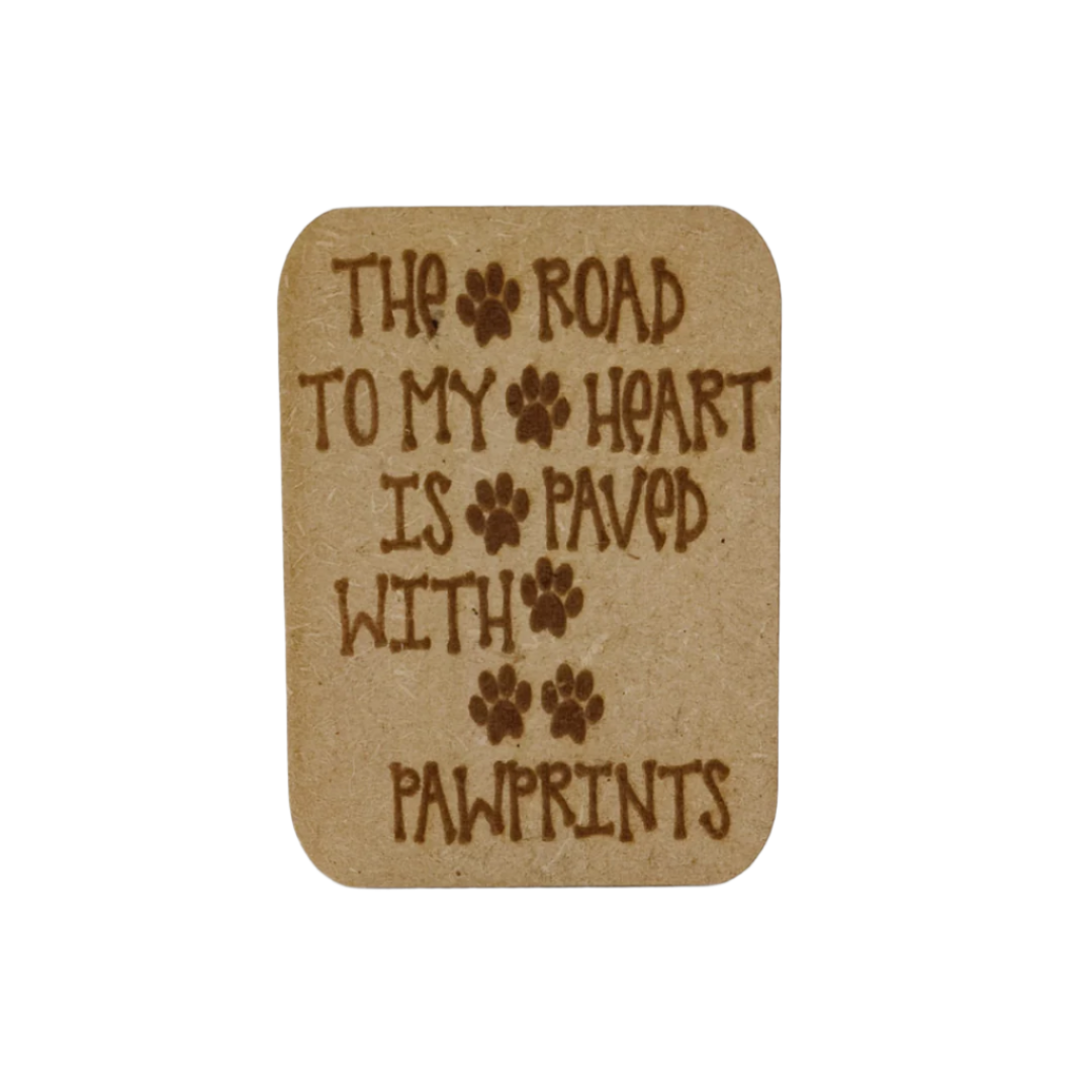 Wooden gift card - Fridge magnet - The road to my heart (paws}